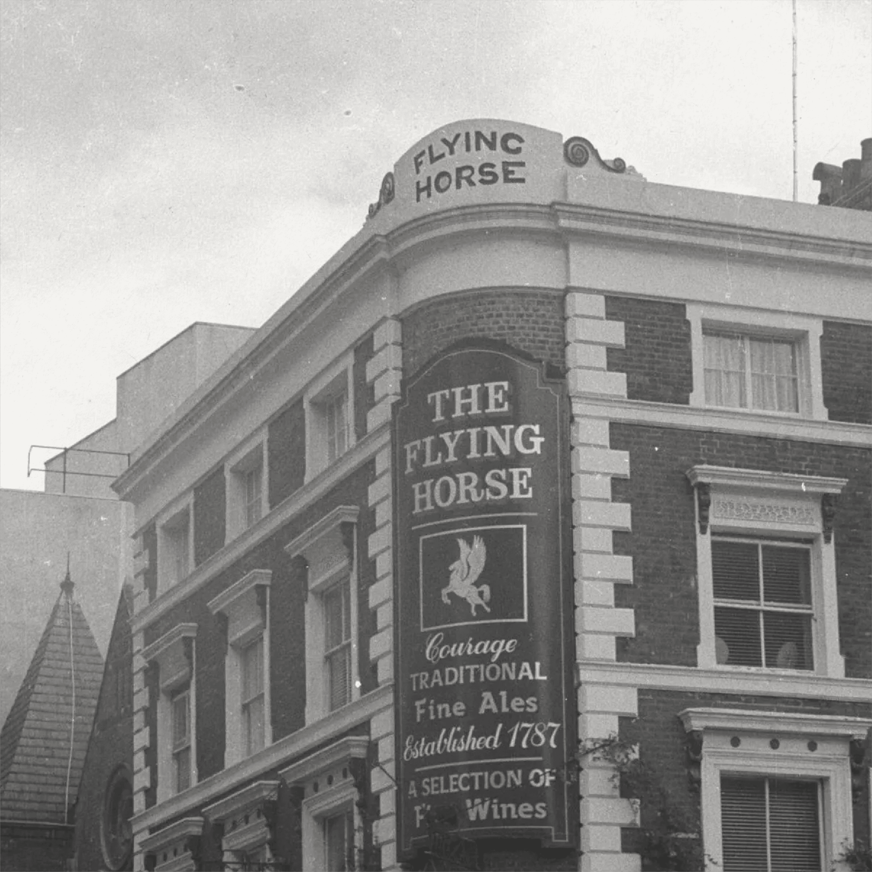the flying horse is a historic british pub positioned within a competitive hospitality landscape. with a strong architectural presence and heritage background, the brand needed a visual identity that respected its history while appealing to a modern audience.